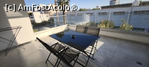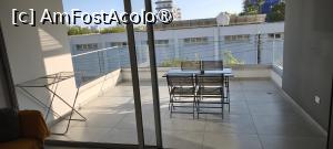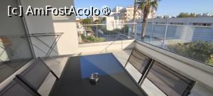 Terasa acoperita a apartamentului avea circa 16 mp si era orientata spre sud. Era o placere sa stai afara dimineata sau seara, la masa mare, cu o cafea sau un pahar de bautura in fata ta, asezat pe unul din cele patru scaune si sa vezi rasaritul sau avioanele care aterizau incontinu pe aeroportul din apropiere. Vremea a fost excelenta iar apa marii la fel.