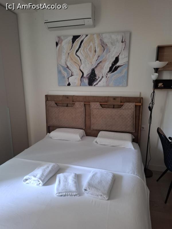 Camera este foarte primitoare, decorată cu mult bun gust în culori calde și dotată cu un pat matrimonial. Din dotarea acesteia mai fac parte o masă, un pantofar, o veioză, o etajeră suspendată pe perete și un televizor smart cu diagonală mare. Există foarte multe dulapuri, deci spațiul de depozitare nu este o problemă nici pentru sejururi mai lungi.