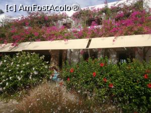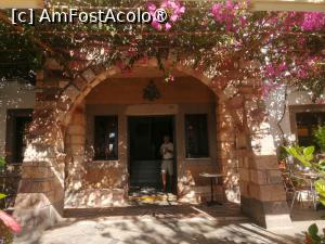 Ce mi-a placut foarte mult la acest hotel a fost linistea si racoarea pe care am simtit-o imediat ce am intrat, holul este generos, cu canapele confortabile si un frumos chemineu, initial am crezut ca nu prea sunt turisti, insa dimineata la micul dejun cu uimire am constatat ca hotelul este aproape plin, ca tot a venit vorba despre micul dejun, nu am nimic de reprosat, erau oua fierte, ochiuri sau omleta, 3,4 feluri de branzeturi, cateva feluri de mezeluri, carnaciori prajiti, rosii si ardei proaspeti, masline, iaurt, miere si gem, cateva produse de patiserie si 2 feluri de prajituri, salata de icre, ceai, cafea (expresso sau filtru), suc de portocale natural. Deci eu zic ca suficient chiar si pentru cei pretentiosi, iar terasa din fata hotelului facea toti bani, bine asta daca nu cumva va supara vantul care din cand in cand scutura cate o floare de bougaivillea! :)