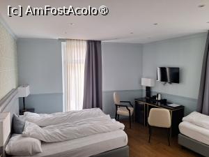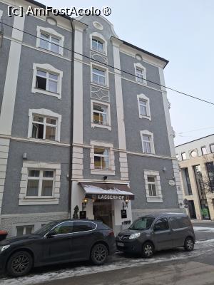 Hotelul se afla pe strada Lasserstrasse la numarul 47, in apropierea garii din Salzburg dupa cum aveam sa aflam ulterior, iar pretul solicitat pe booking a fost de 119 euro pentru o camera tripla, fara mic dejun. Am ajuns fara probleme la Hotel ajutati de Waze si am gasit loc de parcare chiar in fata hotelului. Am facut checkinnul si apoi am preluat camera de la etajul 5, care era de fapt, efectiv o mansarda. Camera era destul de mare, continea un pat dublu imens si unul de o persoana, baie cu cada, pe scurt arata destul de bine, dar, din pacate era destul de rece inauntru. Am cautat sa vad cum se face incalzirea, dar nu am gasit nici un sistem centralizat ci doar un aparat de aer conditionat, pe care l-am pornit, dar parea destul de obosit si dupa un sfert de ora nu reusise sa incalzeasca foarte mult camera.