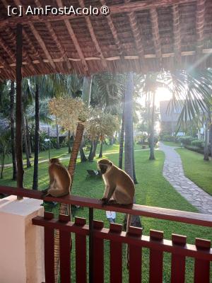 Dimineata veneau maimute pe balustrada terasei...