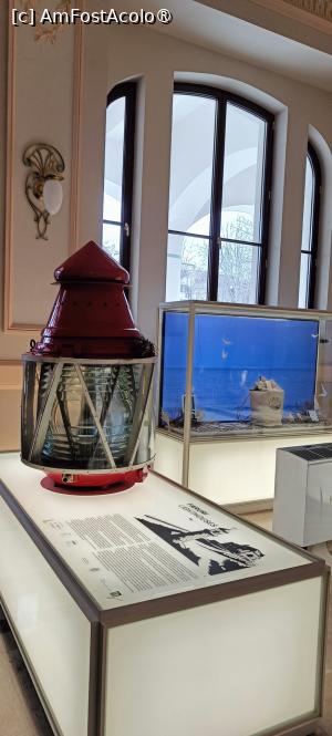 Am intrat în clădire restaurată între 2020-2025, iar în holul de la intrare ne-am așezat la o mică coadă (de aceea este recomandat a achiziționa bilete online) și am plătit cash/card biletul în valoare de 53 lei/adult (detalii program și tarife găsiți aici: cazinoul.com). La biroul unde se vând bilete sunt disponibile spre achiziționare suveniruri personalizate. În acest hol sunt expuse lămpile unor faruri maritime însoțite de texte informative bilingve.