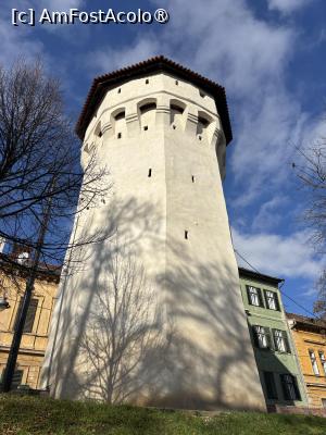 A fost construit împreună cu a treia incintă de fortificații între 1357-1366. Turnul nordic circular la bază și octogonal mai sus a fost construit din piatră și cărămidă. Nu are ferestre doar guri de foc în cazul unui asediu. De la bază (strada Cetății) până sus are 4 nivele. Două renovări au avut loc în timpurile noastre, 1972 și 2007. În copilărie nu îmi aduc aminte să fi fost vizitabilă incinta, doar după 2007 am observat turiști pe galeria de strajă.