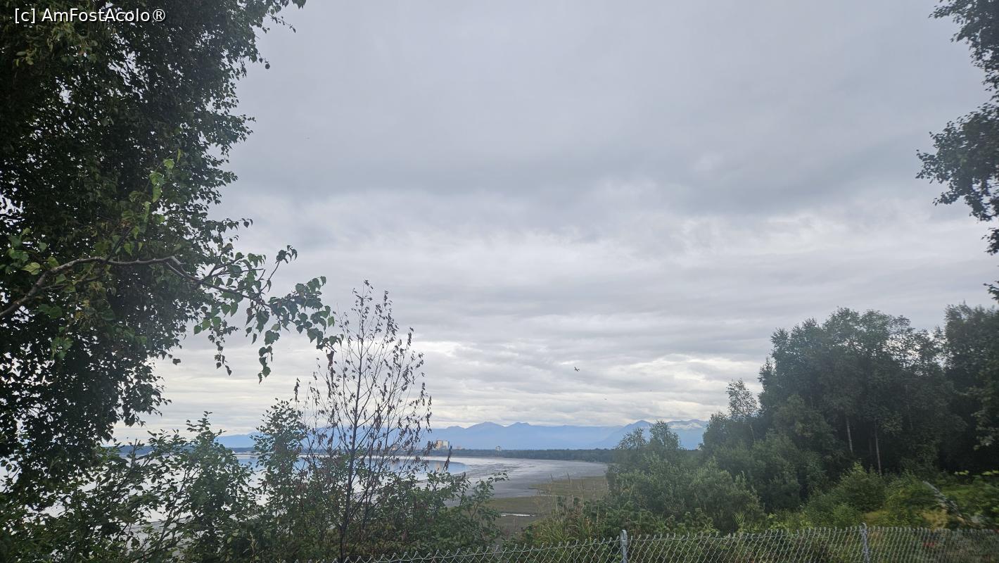 Se pare că nu am mers foarte mult prin oraș cu microbuzul, ci mai mult pe la periferie. E drept orașul este întins pe orizontală și fără mașină ești mort acolo. Așa ne-am putut bucura și de priveliști deosebite, ale munților Chugach ori Chenai, care aveau crestele înzăpezite, chiar dacă eram în luna august.