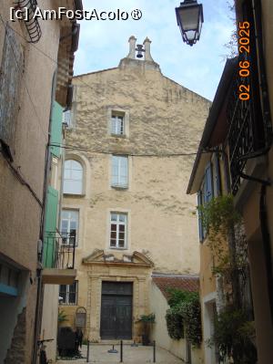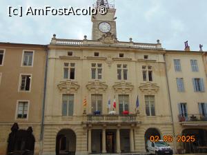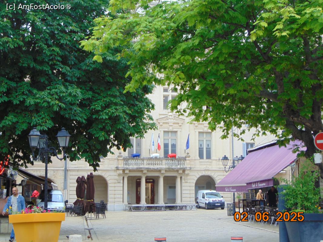 Ajunși în oras am cautat un loc de parcare, un lucru tare dificil, am parcat într-o piațeta cu durata limitata si am plecat la plimbare pe stradutele pline de farmec provensal, cu buticuri diverse, terase si restaurante, am trecut prin piațeta unde este cladirea Primariei si am vazut în balconul cladirii trei purceluși vopsiti în culorile steagului francez. Asta înseamna ca primarul este din alt partid ca cel de la guvernare si ca este împotriva politicilor de la centru… e un mod de a-ți arata dezacordul. Ieșim din piata Primariei si pe o straduța laterala vedem intrarea în catedrala Notre Dame.