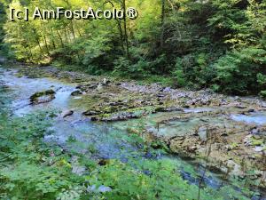N-am cronometrat cât timp ne-a luat să străbatem cei 1,6 km – în ghid zice că ai avea nevoie de vreo 45 de minute și cred că pe-acolo am fost și noi, poate un pic mai mult, că ne-am tot oprit pentru poze și scanat QR-uri. Partea cea mai spectaculoasă e în prima jumătate, pe urmă pereții stâncoși se mai depărtează un pic și pierd din înălțime, râul devine mai puțin adânc și mai lăbărțat.