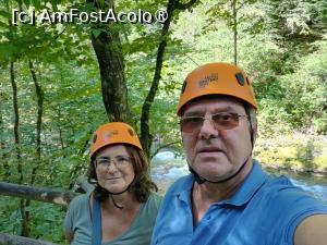 Rezervarea am făcut-o cu o zi înainte pe site-ul www.vintgar. si. Sincer, prefer să iau bilete la fața locului, nu-mi place să fiu condiționată de o anumită oră de intrare, sunt atâtea variabile într-o zi de vacanță, când te deplasezi de colo dincolo. Însă citisem că, începând cu sezonul 2025, cumpărarea biletelor de la Centrul de Vizitare nu mai era posibilă, singura soluție rămânând varianta online. Intrarea în canion costă 15 euro pentru un adult, 5 de copil 3-15 ani și 3 de... cățel. Nu este permis accesul cărucioarelor. În plus, o singură vizită zilnic, cea de la ora 16, poate benefia de ghidare în limba slovenă sau engleză, în limita a maxim 18 persoane și pentru 10 euro în plus de căciulă. Noi am cumpărat bilete la turul cu ghid, gândindu-ne că vom afla probabil lucruri noi și interesante.
