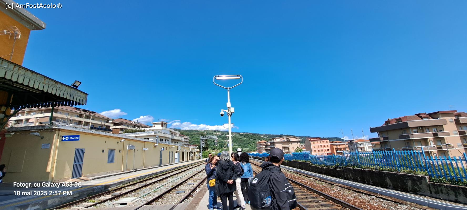 După ce am ajuns la gară, observăm pe panoul cu „mersul trenurilor” că următoarea cursă spre Lamezia Centrale era la 15,03, deci într-o oră. Mergem direct la automatul de bilete, fiindcă vă dați seama că nu există casă de bilete propriu-zisă cu personal uman, dar nu funcționa, era defect!