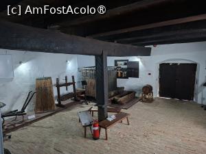 Am vizitat Beciul de la parter cu ziduri groase de 85 cm, cu patru firide adânci şi două metereze evazate, netencuit ca să se vadă cum arăta zidul original. Aici era expoziția „Cernătești – Istorie și tradiție” cu peste o sută de exponate ce se aflau în colecțiile vechiului muzeu comunal. Am pozat și fereastra ce ducea la camera ascunsă. Peste tot se aflau tablete, LCD-uri care oferă informații interactive, se puteau citi dar mai mult am ascultat ce ne-a povestit ghida.