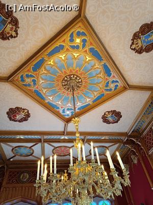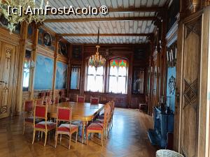 Sufrageria Palatului se află într-o clădire separată, legată de clădirea principală printr-o loggie deschisă, Interiorul fiind proiectat în întregime, în stil neogotic de arhitectul Nebelong, proiectatul Palatului. Pereții și tavanul sunt acoperiți cu panouri din lemn de stejar bogat sculptate, consolele de sub grinzi sunt sculptate în formă de lebădă, tavanul este decorat cu ornamente simple, roșii, albastre și aurii pe un fond alb, iar pe pereți sunt oglinzi care măresc vizual Sala. Este mobilată simplu, o Masa din mahon și mai multe Scaune tapițate cu o stofă roșie, aranjate unele în jurul mesei, altele, pentru spectatori, la perete. Are Ferestre înalte și dreptunghiulare, cu sticlă colorată, roșu, portocaliu, ocru și verde în secțiunea superioară și Candelabre elegante din alamă aurită, cu lumânări stilizate care asigură zi și noapte un iluminat abundent.