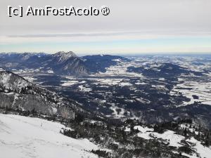 Cabinele arată foarte bine; nu am mai urcat de 20 de ani pe Bucegi, dar nu există termen de comparație. După cum se vede în P12, pereții sunt total transparenți, asigurând o priveliște 360 de grade. Asta nu e neapărat bine, se accentuează senzația că te poți prăbuși oricând (mai ales când treci prin dreptul stâlpilor uriași - P14), dar ceea ce se vede este fabulos (P7-P19 sunt făcute la urcare, P44-P49 la coborâre). Salzburgul se poate cuprinde cu privirea doar de pe la mijlocul muntelui în sus; în P16 este pista de aterizare a aeroportului. E simpatic să îți dai seama cât e de neînsemnat dealul pe care se află fortăreața (Festung Hohensalzburg), deal care îți scoate sufletul dacă îl iei pieptiș (P21).