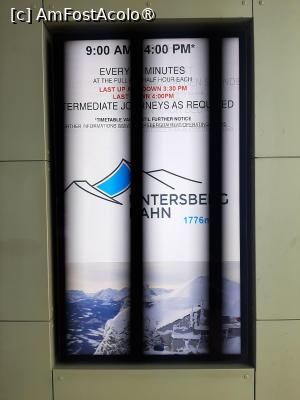 Sunt două cabine (una urcă, alta coboară), cu plecare simultană, la fiecare oră exactă și la fiecare și jumătate, ultima de sus fiind la 16:00 (asta iarna, pentru că vara merge până mai târziu, dar nu cu mult, parcă 17:30). Se recomandă să se evite ultima cursă, pentru că este foarte aglomerată. Se poate coborî și pe jos, cam într-o oră, vara cred că e chiar mai plăcut așa. În cazul în care sunt foarte mulți doritori, se suplimentează plecările, la și un sfert sau la fără un sfert.
