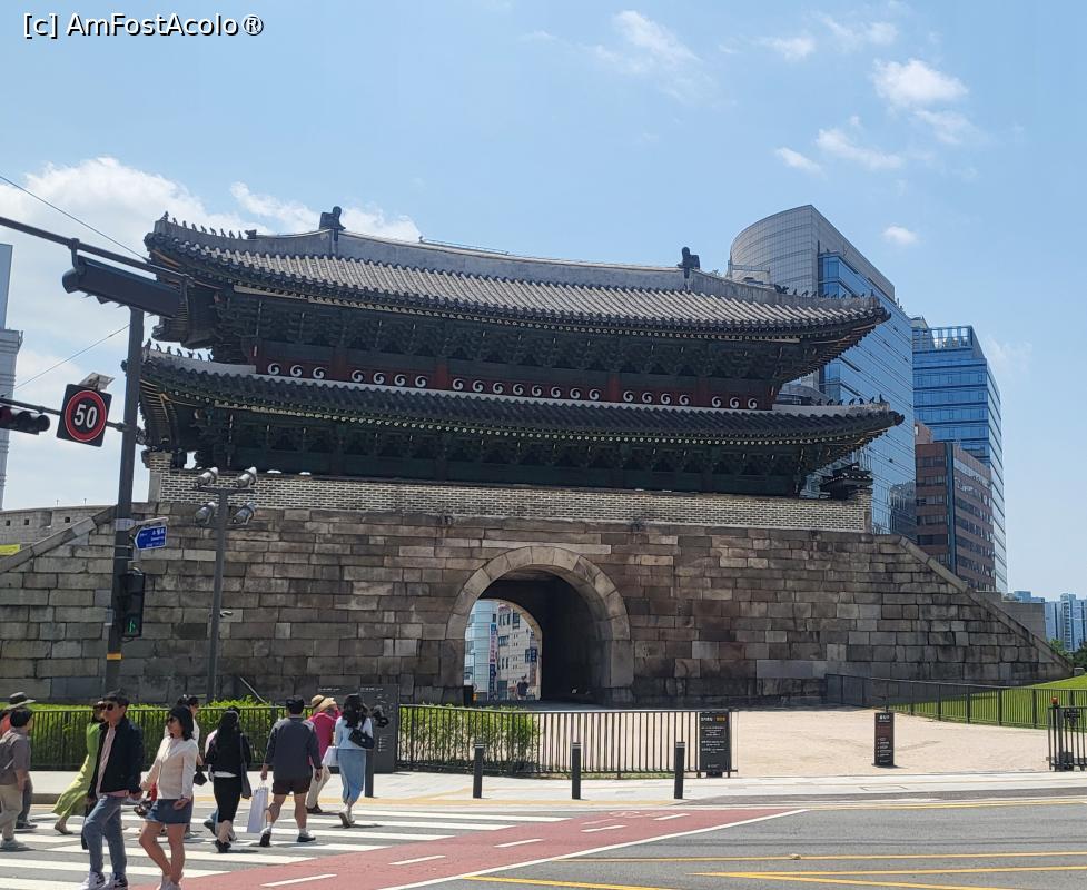 O prima oprire am facut-o la poarta Sungnyemun, una dintre cele 4 porti principale istorice ale Seulului, care mai este cunoscuta si sub numele de Poarta Namdaemun, datorita amplasarii sale in ceea ce a fost odinioara capatul sudic al Seulului. Poarta se afla in centrul orasului, la cativa pasi de locuri precum Palatul Deoksugung si Primaria din Seul. Tradus, numele acestei porti inseamna „Poarta Ceremoniilor Emotionante” , ceea ce are sens, deoarece servea drept loc unde regele ii intampina pe emisarii straini. Aceasta poarta simbolizeaza focul, fiind cea mai sudica, iar in perioadele de seceta era inchisa, in timp ce poarta din nord, reprezentand apa, era deschisa, sperand ca apa sa intre.