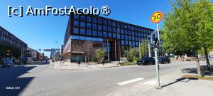 Primăria - Stadshuset o clădire din sticlă și beton, un exemplu de arhitectură modernistă, finalizată în 2021 are Fațadele din sticlă și Curtea interioară amenajată și ca loc de odihnă cu cafenea, restaurant, patiserie și un Punct de Informare Turistică. Am găsit hărți, broșuri, pliante din care am luat și noi câteva. Nu era nimeni acolo doar pliantele și hărțile necesare.