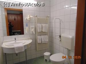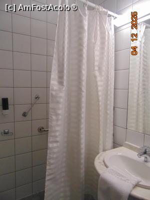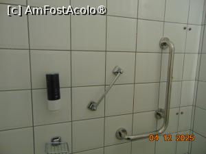 Baia este spatioasa, cu prosoape curate si uzura medie, zona de dus despartita de restul baii cu o perdea de dus, strica tot aspectul, doua dozatoare cu gel si tot felul de suporturi de sustinere montate pe peretele de la baie pentru a nu aluneca la dus sau pentru sustinere la vasul de toaleta.