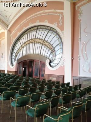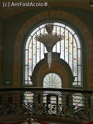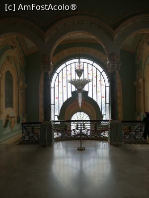 La ora 14.00 am ajuns la Cazino. Programul de vizitare este intre 10:00-18:00 de marți pana duminica și au pauza de la 13:30-14:00. Biletele au fost este de 53 lei de persoana. Mi-a plăcut ca nu era aglomerat. Am prezentat biletele și am intrat în sala din stânga la parter unde era prezentată istoria cazinoului pe niște panouri interactive – foarte interesant. Am admirat vitraliile cu flori, lustrele şi aplicele foarte frumoase. Am urcat pe scara de marmură la etaj unde era o sală de spectacole mare cu scaune și cu o scenă. Imediat în dreapta, în Sala Oglinzilor era expoziţia Ea. Regina și marea. Expoziţia prezintă obiecte personale ale Reginei Maria, bijuterii, picturi, poze.
