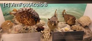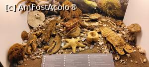 *vitrinele care ne prezintă nevertebratele din mediul acvatic (scoici, corali, crustacee), apoi peștii și reptilele;