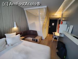 Am sperat să existe comunicare directă între parcare și hotel, însă nu există, a trebuit să ocolim și să urcăm/coborâm ceva trepte, ceea ce n-a fost tocmai simplu cu papornițele după noi. Atâta necaz să avem... Hotelul are formă de L și 6 etaje, ultimul fiind destinat recepției, așa-numitului „club” (ceva combinat între zonă de servit masa și de relaxare), terasei descoperite și sălii de gym, camerele aflându-se la etajele 1-5. Mai există o încăpere unde poți să-ți calci rufele undeva la etajul 1, dar n-aveam să fim curioși s-o inspectăm.