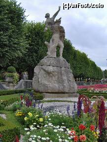 In centrul unui pavilion al gradinii se afla o superba fantana arteziana – fantana Pegasus – realizata din cupru si inspirata din mitologia greaca. Intr-un alt pavilion se afla sculpturile in marmura ale unor pitici – aceasta parte a gradinilor se numeste si gradina piticilor – din pacate nu toate sculpturile originale se gasesc aici.