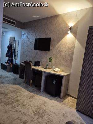 La intrare se află un cuier și o măsuță pentru valiză.