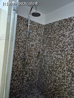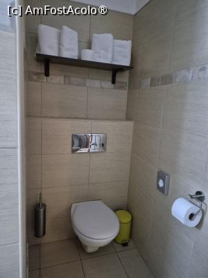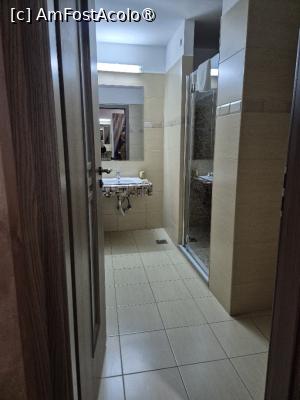 Baia este foarte mare, compartimentata cumva pentru WC, chiuveta și cabina de duș. Cabina este foarte mare, am văzut de curând un apartament care avea bucătăria un pic mai mare!