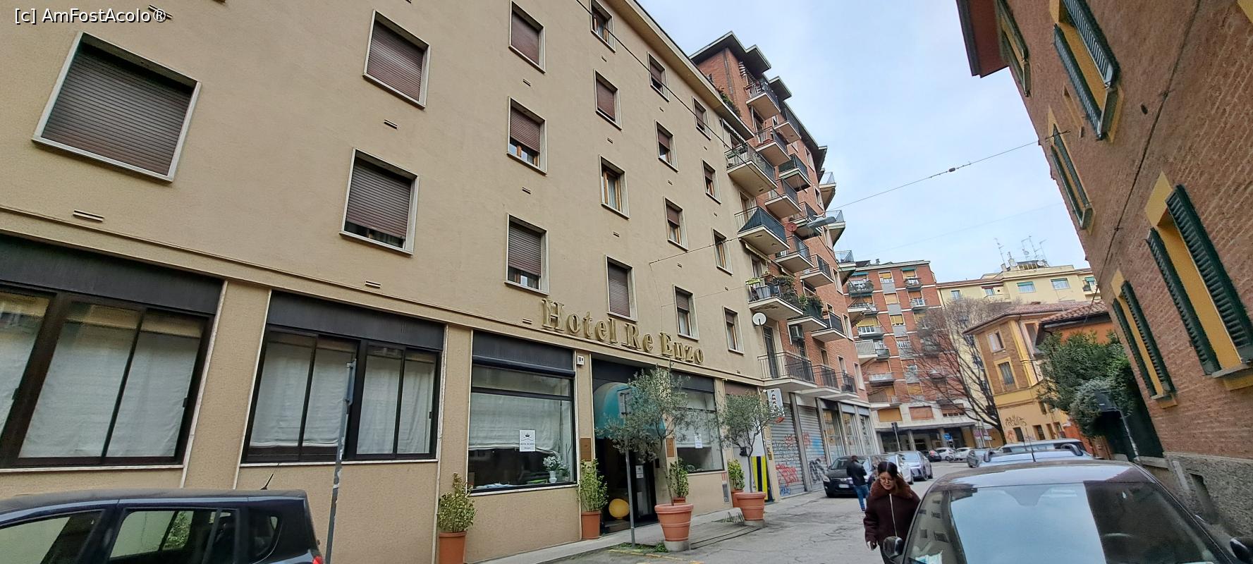 Situat în extremitatea vestică a centrului istoric din Bologna, Hotel Re Enzo, cotat la 4*, este un stabiliment cu o vârstă apreciabilă, dar refăcut și modernizat în mai multe rânduri, așa încât astăzi are un aspect elegant, plăcut și atrăgător. Dispune de 51 de camere dispuse pe 6 niveluri, acestea fiind de mai multe tipuri de confort: standard duble twin sau matrimoniale, superioare, câteva suite, camere triple sau cvadruple, unele cu balcon, altele fără. De asemenea, are șase săli de conferințe, ceea ce îl face căutat pentru diverse întâlniri de afaceri.