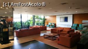 Când am ajuns la Hotel Rio Othon Palace, fiind seară și foarte obosită după zborul lung, nu am acordat prea multă atenție zonei de la intrare. Totuși, am remarcat un spațiu generos, aerisit, în care se află recepția, completat de o zonă de lounge, un bar și mai multe canapele și fotolii confortabile, care creează o atmosferă plăcută și relaxantă.