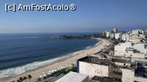 Dimineața, după ce a răsărit soarele, vederea de pe balcon a fost foarte frumoasă: oceanul cu valuri pe partea stângă, clădirile scăldate în lumina dimineții, care, deși nu erau moderne și aveau un aer mai vechi, contribuiau la o atmosferă plăcută și specifică orașului. Cât cuprindeai cu privirea spre orizont, pe partea laterală dreaptă se distingea Trilha Morro do Cantagalo, o zonă deluroasă cu traseu pietonal ce leagă cartierele Copacabana și Ipanema, oferind puncte de belvedere asupra orașului.