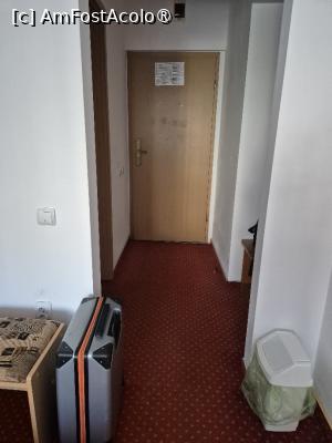 La intrarea în cameră este un hol îngust. Pe un perete este ușa de la baie iar pe cel opus un cuier și o mică poliță, tocmai bună de pus o geantă sau un rucsac.