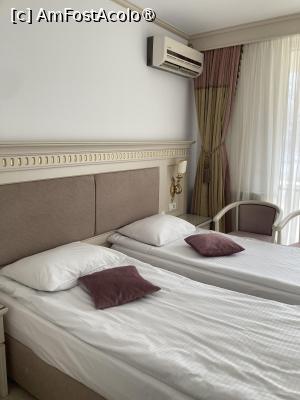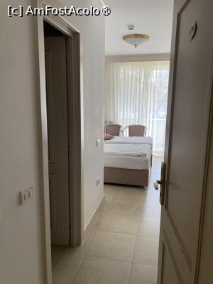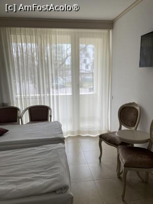 Am ajuns la hotel in jur de ora 13, intr-o zi de vineri 20 martie 2026. Am gasit lejer loc in parcare fara nici un fel de probleme. Am intrat in hotel unde am facut destul de rapid facilitatile de cazare primind 2 carduri. La o masa ne asteptau zoazore si roth unde am predat obiectul de tombola si am achitat excursia si dj (nu stiu cum s-a ales dj dar a meritat toți banii, am dansat de-am rupt podeaua si incalțarile). Camera noastra a fost 109 cu paturi twin (pe care le-am unit in prima seara dar a doua seara le-am distantat ca sforaia cam tare sotul) așa ca bine ca am avut camera twin, Camera era destul de ok pentru noi (avea halate, papuci - ca nu ne luasem de acasa). Sotul meu a avut o problema ca nu era incaltator (eu i-am zis ca gasim ca e hotel de 4 stele si ia că nu avea). Am avut umerase suficente pentru noi, cuier pentru geci si loc pentru genti, bar cu bauturi). Balconul in schimb era destul de generos si avea si loc pentru pus rufe la uscat (cei drept uscatorul era strans dar avea asa ceva). Asa ca am luat scaunele de langa pat si le-am dus pe balcon unde sotul mai fuma din cand in cand si cateodata mai ieseam si eu sa vad marea (se vedea putin dar era cu valuri in prima zi). Mie mi-a placut foarte mult resturantul velvet cum era aranjat. De asemenea mi-a placut si toate decoratiile de pe zona de hol si la intrare. Se vedea ca au aranjat foarte frumos hotelul. Baia intradevar era cam mica mai ales in zona de wc dar dușul era destul de mare, incapeam 2 persoane in el. Chiuveta era ok, destul de mare unde am putut să-mi las borseta cu cosmetice, avea si trusa pentru cusut, casti pentru duș si crema de corp, pe langa gel de dus. sapun de maini si sampon. Oricum baia era mult mai ok decat cea de la Paltinis unde chiuveta era in jur de 40 cm poate chiar mai mică. Avea oglinda mare si uscator de par.