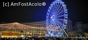 Ah da... pare că a devenit o modă înlocuirea bradului cu o roată panoramică. Cel puțin așa spune logica de la fața locului. În alți ani era brad dar nu era roată, acum e roată dar nu-i brad. Cel mai mult m-a uimit coada de la roata panoramică... cred că dura cel puțin 30-40 de minute statul la această coadă. Sublim! Dar mergând pe logica încasării banilor, roata aduce bani bradul nu! Păi intrarea aia gratuită trebuie să fie scoasă pe undeva, nu?