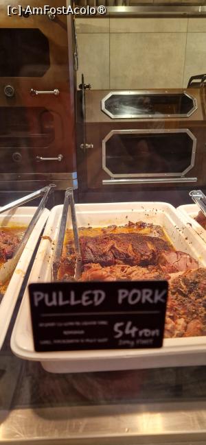 În fine, o altă prietenă și fostă colegă a ales – din categoria „Meat Zmoke” – Porcheta, piept de porc, bacon, usturoi, boia dulce, cimbrișor, și cartofi prăjiți (85 lei).