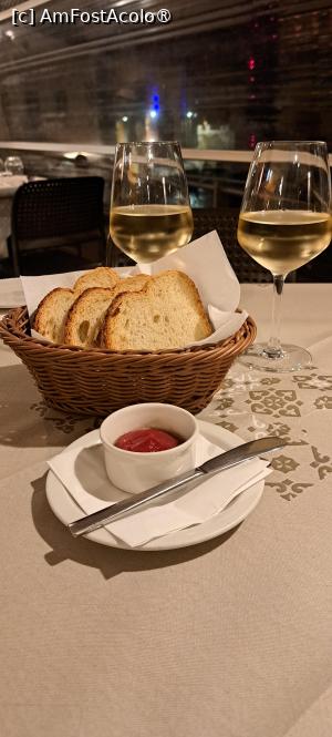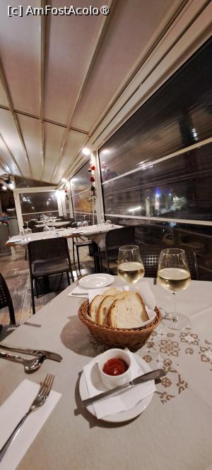 a fost dificil să găsim locația restaurantului, mai ales că am fost ghidați foarte bine de google. maps. Restaurantul este găzduit de o clădire destul de mare, însă vis-á-vis, cumva peste stradă, are o terasă generoasă situată chiar pe malul mării. Am preferat să ne așezăm pe terasă, vremea fiind călduță, deși văzusem că erau pregătiți la nevoie și cu radiatoare din acelea vericale. Mese libere am văzut foarte multe, așa că pe moment, atunci când a apărut ospătarul (și a apărut repede), nici nu ne venea să spunem că avem rezervare, apoi am spus totuși pentru a demonstra că suntem oameni de cuvânt și ni-l respectăm.