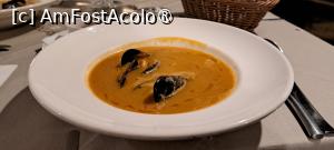 Supa de pește cu fructe de mare am regăsit-o în meniu ca supa făcută după rețeta bunicii (sale) care s-a dovedit o bunătate, devorând-o până la ultima picătură. Era groasă, conținea bucățele de pește și midii cu tot cu carapace. Sosul nu ne-a prea fost util, nesimțind nevoia de „iute” la ciorbă, dar l-am testat mai mult din curiozitate.