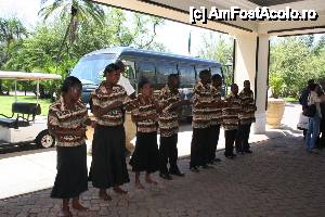 Hotelul se numeste Royal Livingstone si impreuna cu un alt hotel, Zambezi Sun face parte din acelasi resort. Am fost intampinati de o formatie vocala ce canta ceva traditional.