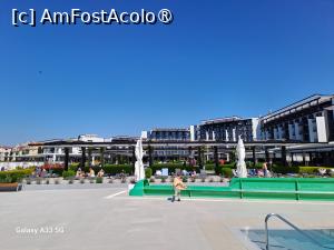 Piscina principală, de dimensiuni generoase, atrage majoritatea turiştilor. În jurul acesteia sunt numeroase şezlonguri, nu cele mai confortabile posibil, neavând salteluţe, dar OK pentru mine, înşirate pe mai multe rânduri sub nişte copertine care protejează împotriva soarelui. Există şi câteva duşuri.