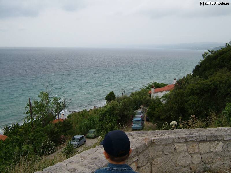 [P2x] Faleza din Afitos, soseaua coboara in trepte pana la mare.