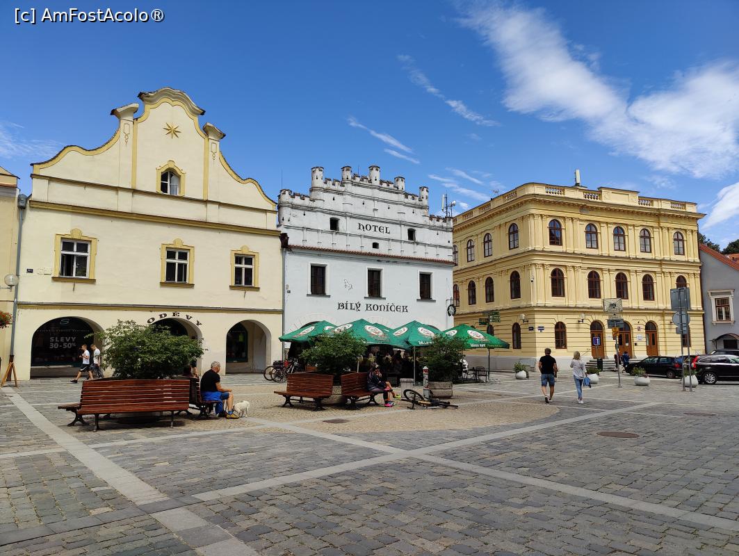 [P03] Piața orașului vechi Trebon; clădirea albă din mijloc este hotelul istoric Căluțul Alb