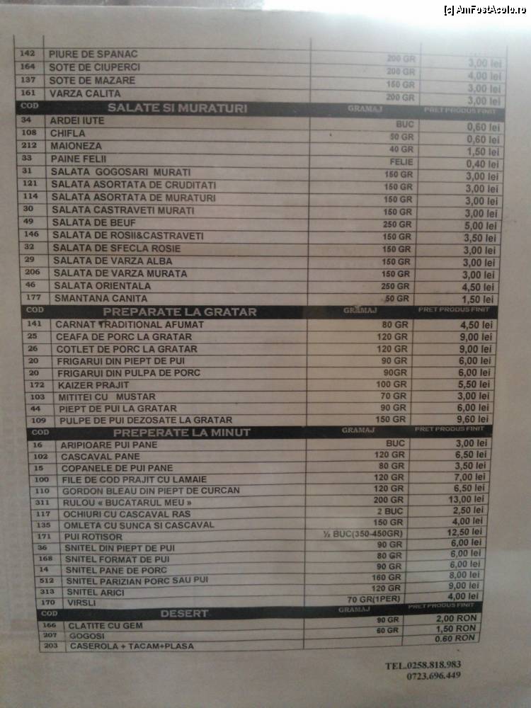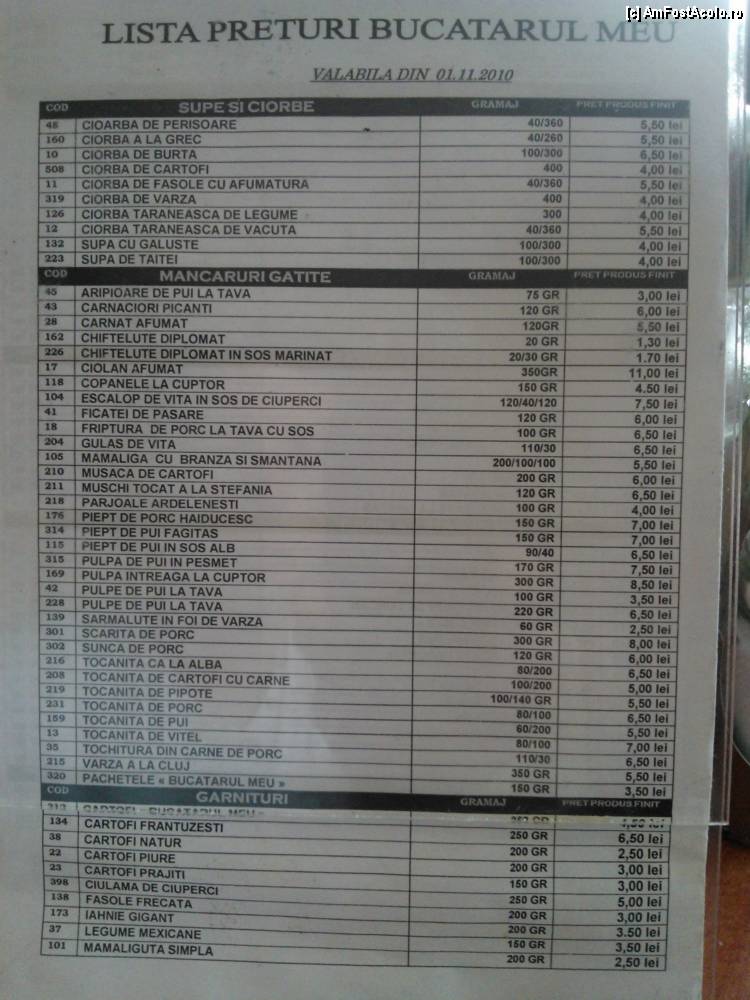 [P05] Autoservice Bucatarul Meu / Lista de prețuri. Prețuri mici, porții suficient de mari.
