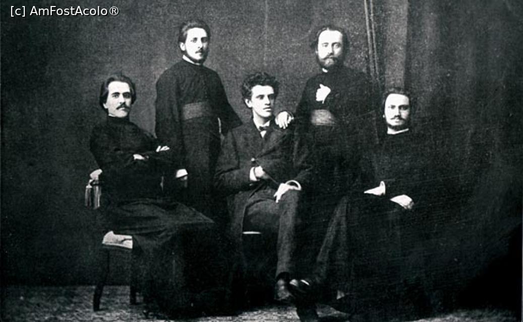 [P26] Fotografie tinerii studenţi din mişcarea Arboroasa. În mijloc pe scaun Ciprian Porumbescu