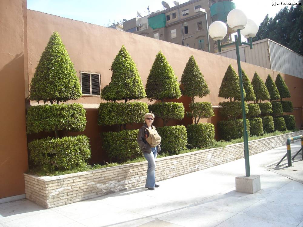 [P08] intrarea prin partea noua a hotelului. Peste tot sunt copacei "frezati" in fel si chip