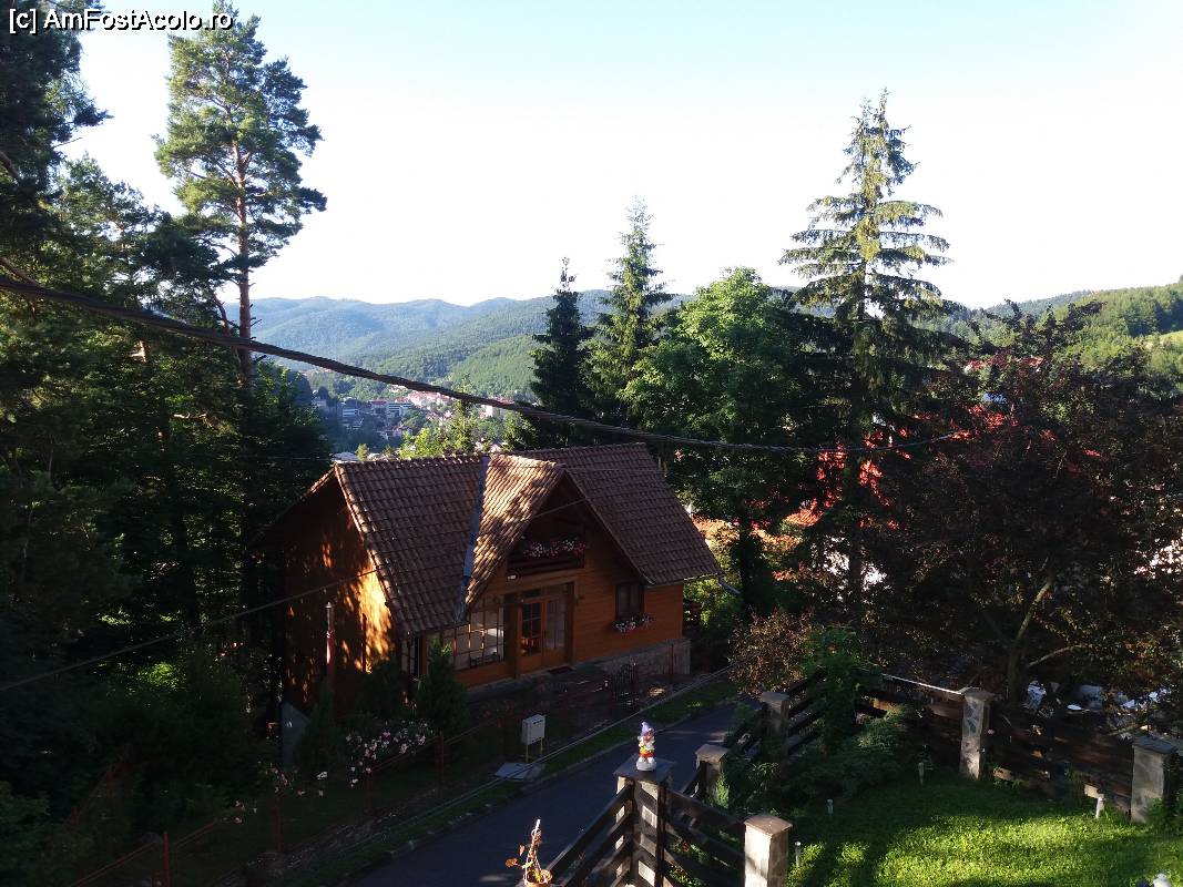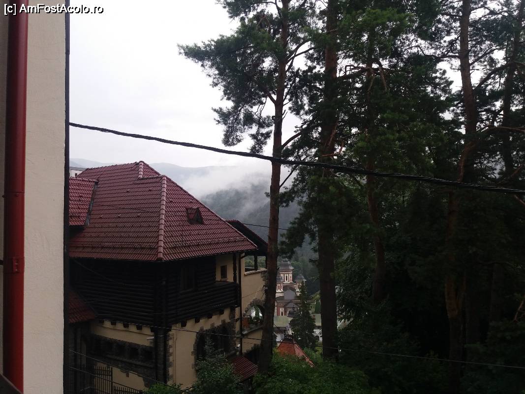 [P03] Vedere de pe geamul camerei-în planul doi se vede o parte din Mănăstirea Sinaia