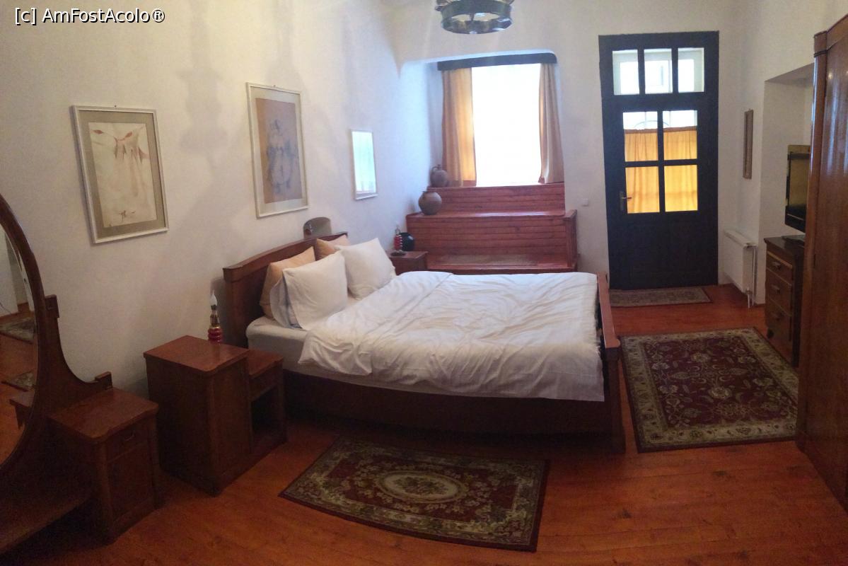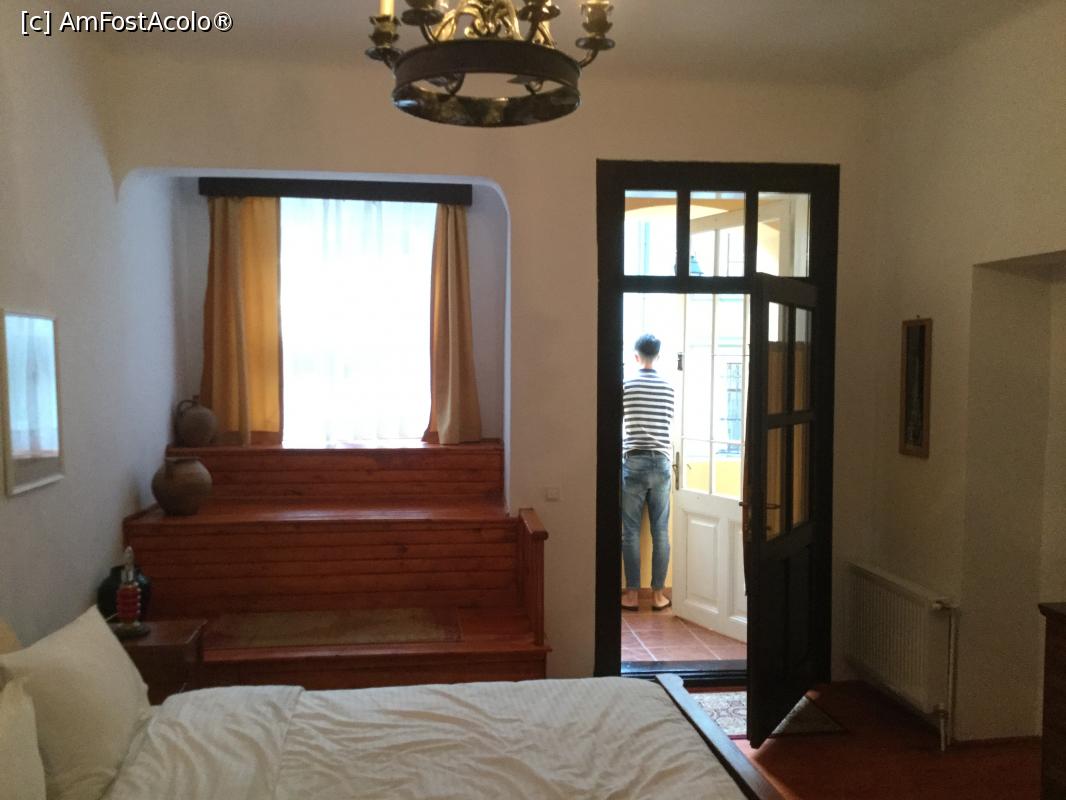 [P08] Casa Mador, Sighisoara - Dormitorul chiar era mare, un adevarat rasfat si va rog sa observati mobilierul. Usa da in balconul cu vedere la strada (nu a incomodat pe nimeni, cand ne-am intors la culcare nu mai era nimeni pe strada)