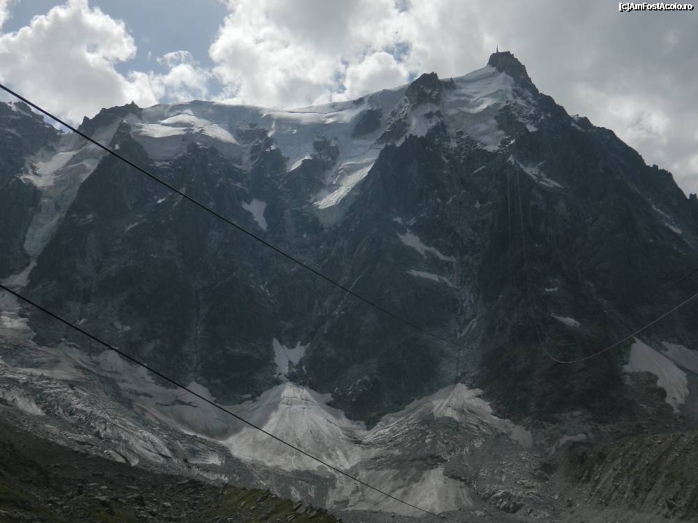 [P29] Sus pe terasa, pe masivul Mont Blanc, pasarela ce duce la un lift care urca turistii pana la altitudinea de 3842 m (am urcat si noi)