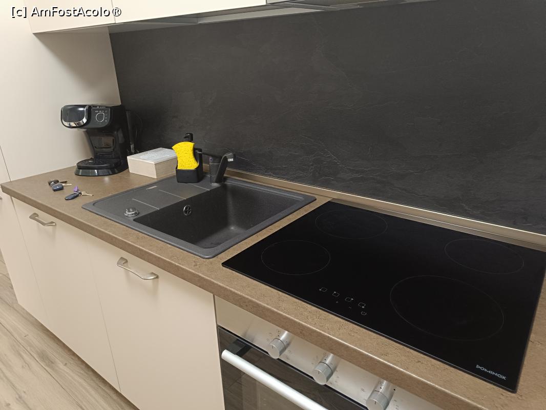 [P15] Cluj, Covaciu Aparthotel, Apartamentul 4, Camera multifuncțională, Bucătăria, Chiuveta, Plita și Cuptorul electrice