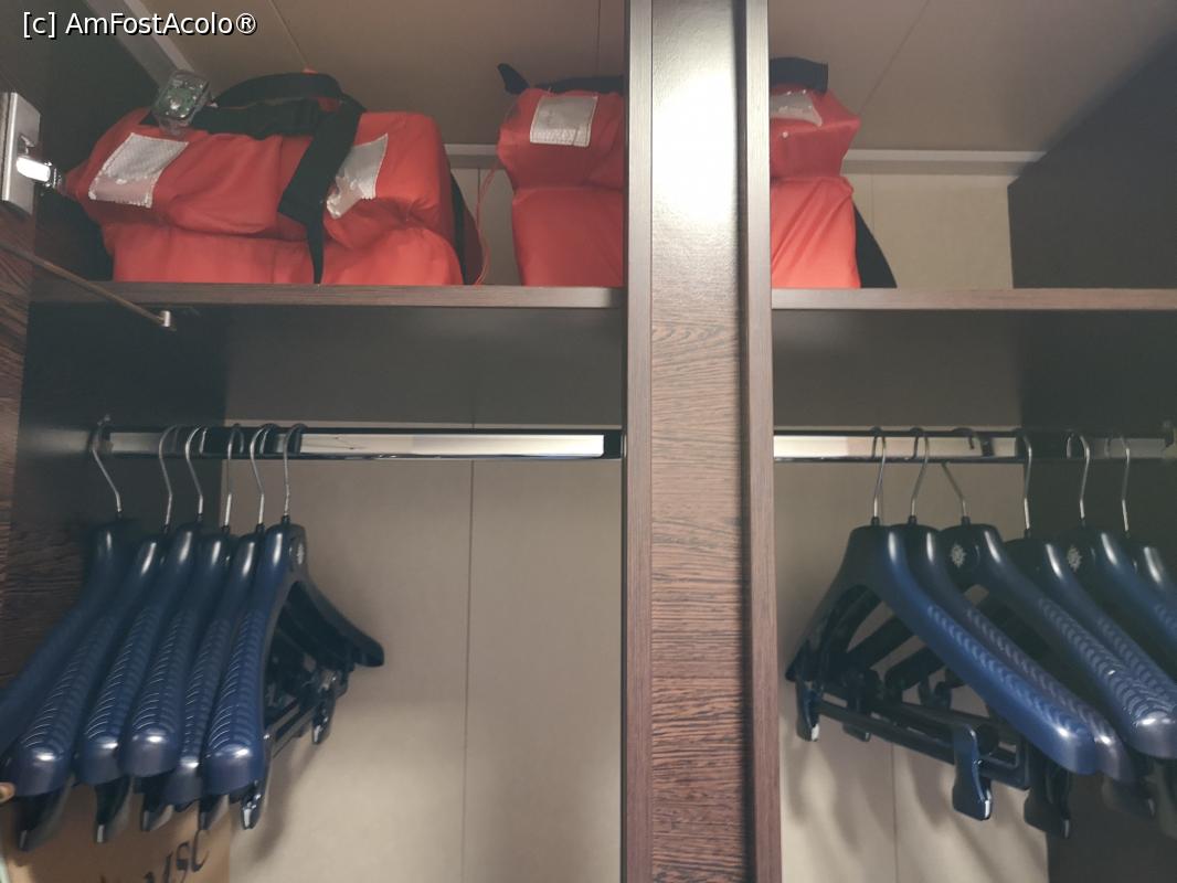 [P10] Cabina 9273; o parte din conținutul dulapului de pe hol; sus, vestele de salvare
