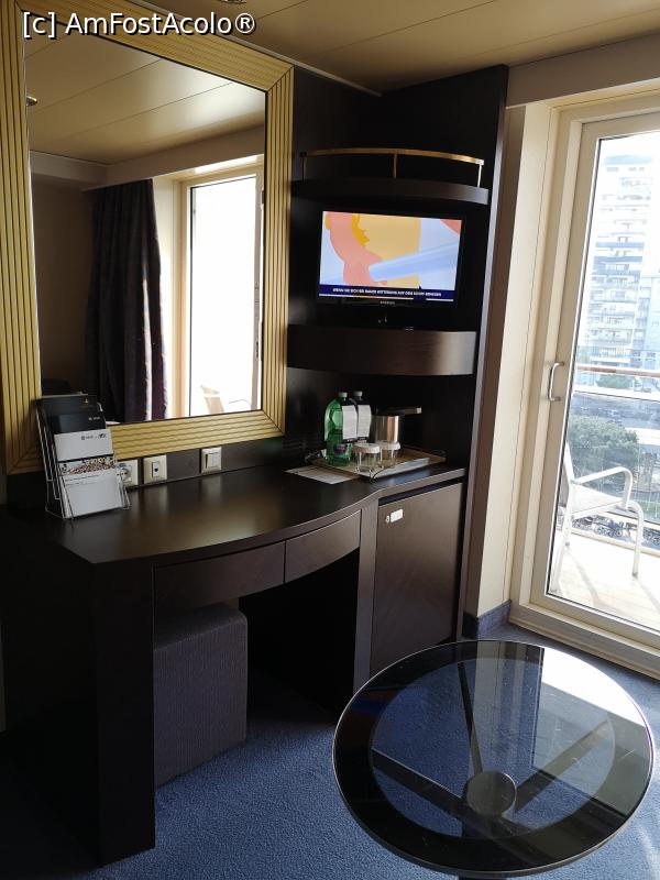 [P06] Cabina noastră; măsuța, biroul, minibarul, TV-ul