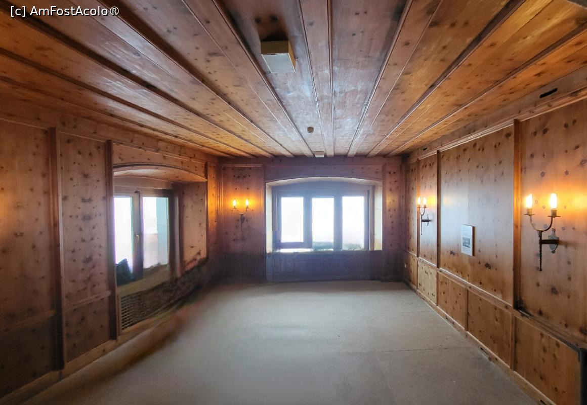 [P13] Cea de-a treia incapere, cunoscuta si sub numele de Scharitzkehlzimmer sau mai recent „camera Eva Braun”, era cea mai luminoasa camera din casa. Captusita cu lambriuri scumpe din Cembra sau pin elvetian, camera avea 2 ferestre mari orientate spre sud si est, oferind o vedere uluitoare asupra muntilor.
