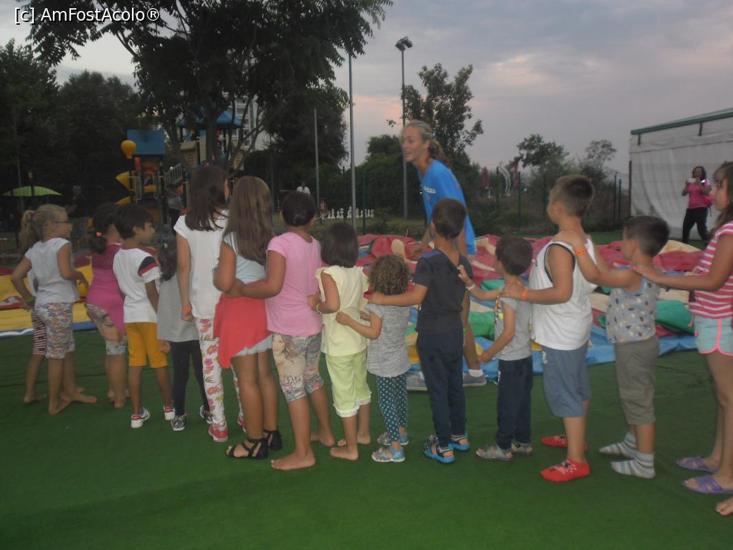 [P31] Locul de joacă pentru copii, deschis de la orele 18.00, gratuit pentru copiii cazați la hotelurile Delta și California. Aici copiii stau încolonați pentru a intra la teatru. Lângă ei, unul dintre actori, care este și animator și care antrenează micuții în diverse jocuri.