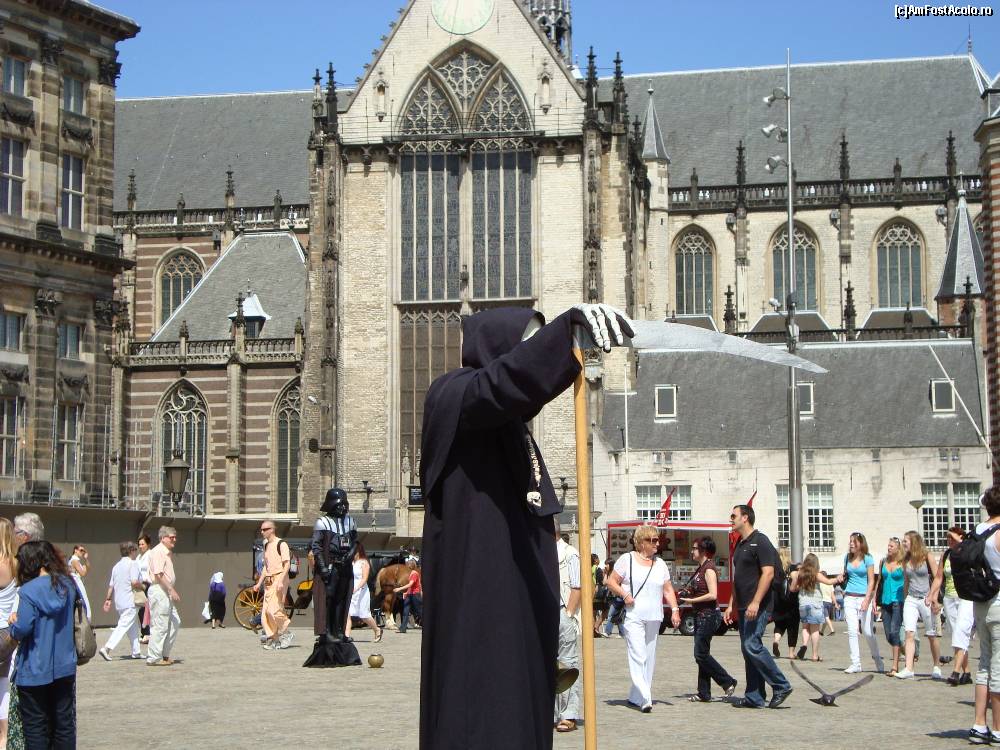 [P05] Artistii strazii in Piata Dam ce asteapta obolul in fata bisericii